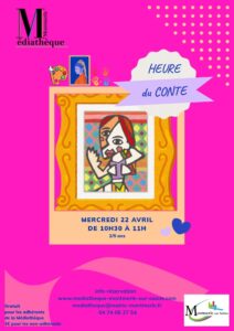 Bonjour à toutes et tous, Au programme en avril, · Mercredi 1er avril : ATELIER BRICOLAGE Crée ton panier et pars à la chasse aux œufs ! De 10h30 à 11h15 : atelier pour les enfants de 3/5 ans (accompagné d'un adulte) À la médiathèque Nombre de places limitées -...