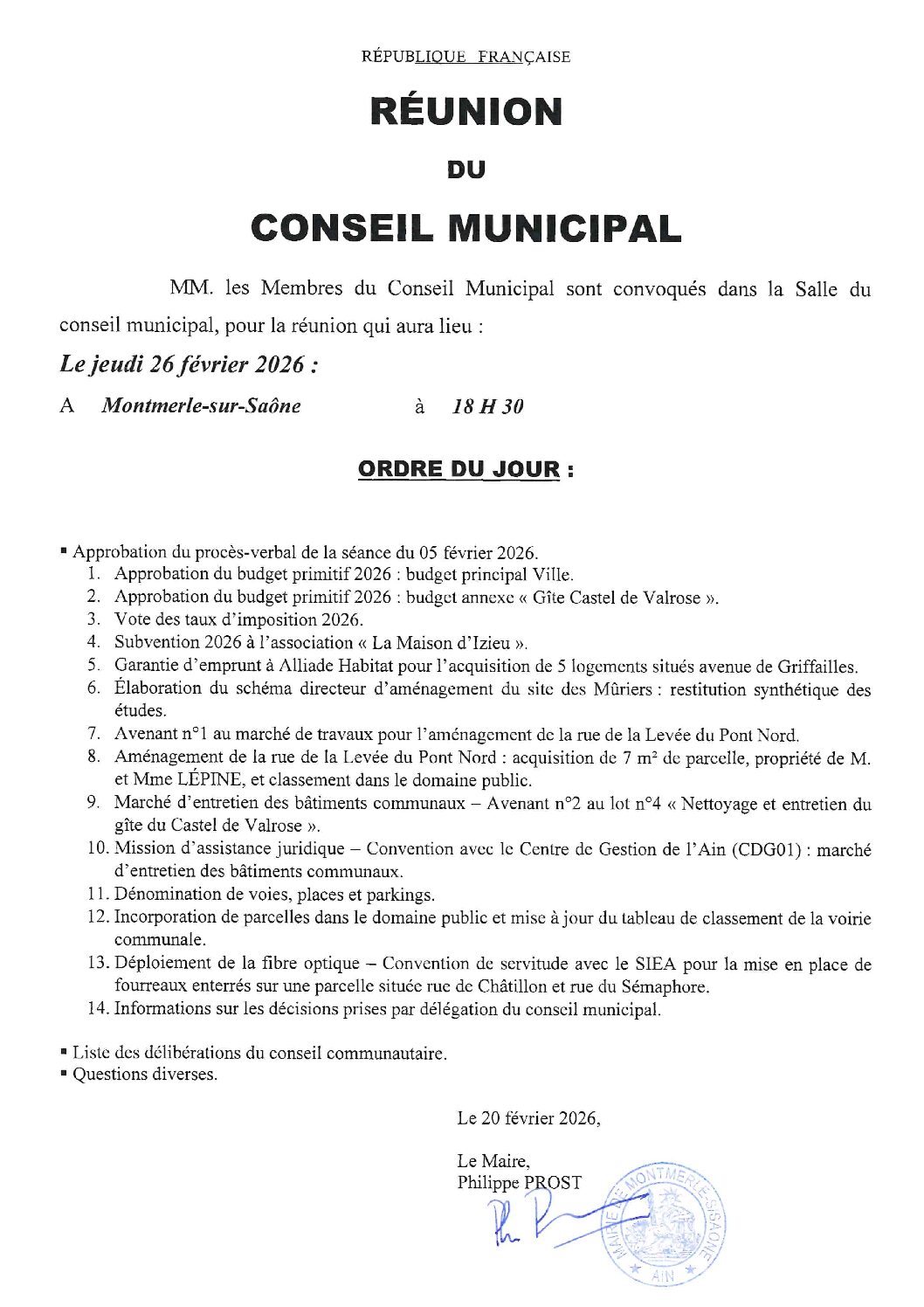 26 Février 2026 Télécharger l’ordre du jour Télécharger la liste des délibérations Télécharger les délibérations Annexe 1 et 2 – BUDGETS PRIMITIFS 2026 Télécharger le Procès verbal Télécharger les décisions Annexe 5 – CONTRAT DE PRÊT Télécharger les annexes au Procès-verbal Annexe délibération n° 6 – Schema directeur Annexe 1 – MAQUETTE BUDGET Annexe 2 – MAQUETTE BUDGET PRIMITIF CASTEL DE VALROSE ARCHIVES 2018 2012 2017 2011 2016 2010 2015 2009 2014 2008 2013 2007